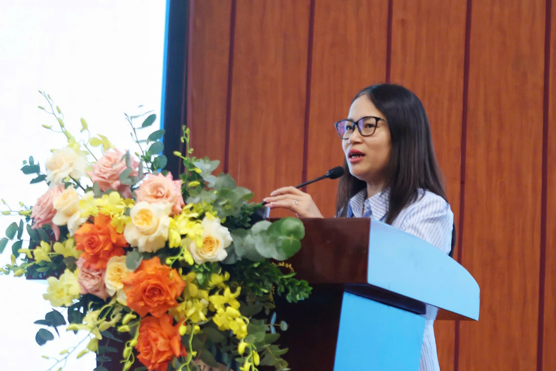 ThS. Trần Thị Thúy, Chuyên viên Vụ Hợp tác quốc tế phát biểu tại Hội thảo