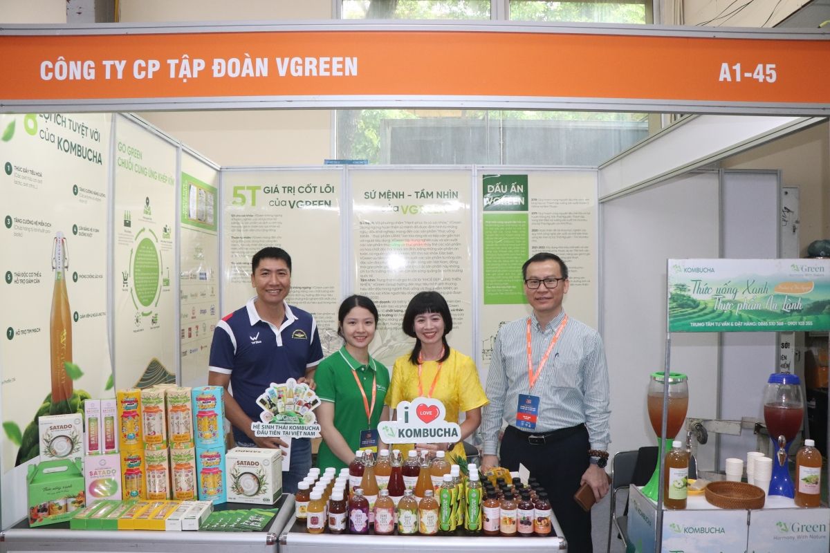 Công ty Cổ phần Tập đoàn VGreen trưng bày các dòng Kombucha thảo dược, thạch dưỡng sinh, bột Kombucha lên men tự nhiên.